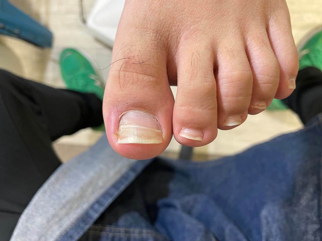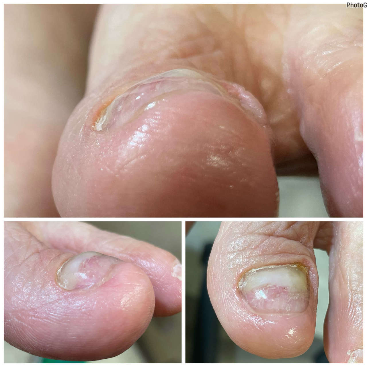 左母趾の爪の半分から段差になりさらに血液がかたまったようなものがあり、さらに内側が巻き爪にもなっていました。