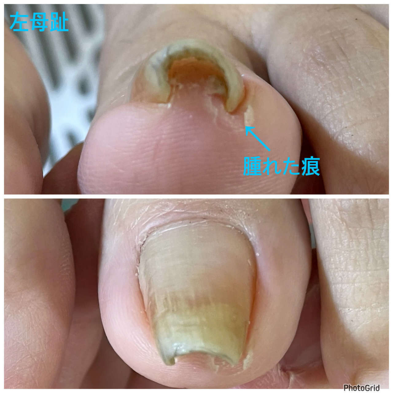 写真を見比べると爪の両側にできていた溝が無くなり爪の幅が本来の爪の幅に戻っているのがわかります。